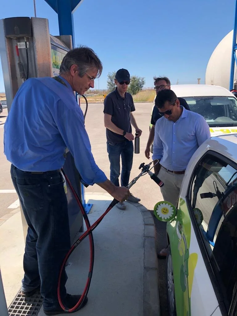 Frank Rogalla, Director of Innovation and Technology, Aqualia, fuelling up the All-GAS EU Project car , Spain